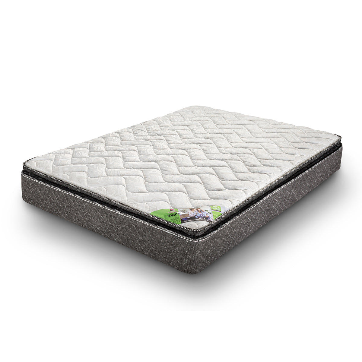 La síntesis entre nivel de firmeza medio y una resistente tela de pique apta para los usos mas exigentes es nuestro modelo Sigma. Diseñado para personas con peso corporal medio. Ahora con una suave y acogedora tela de tonos claros que realza su elegancia. Su construcción "Euro Top" recomienda una constante rotación de su uso para mantener intactas sus cualidades originales.