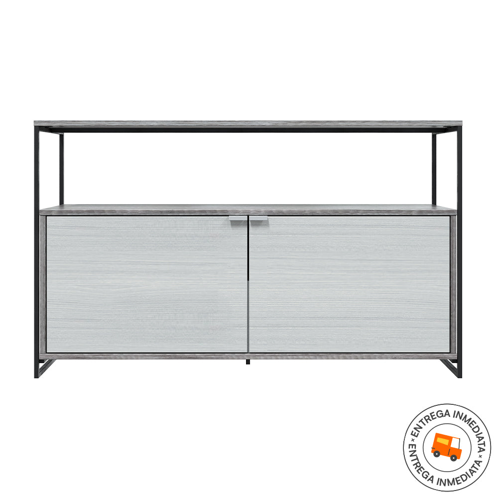 Características: Credenza de 5 espacios de almacenamiento con cuerpo y dos puertas en el color que elijas, un entrepaño y una división en el interior con una estructura de metal negro da soporte al mueble.
