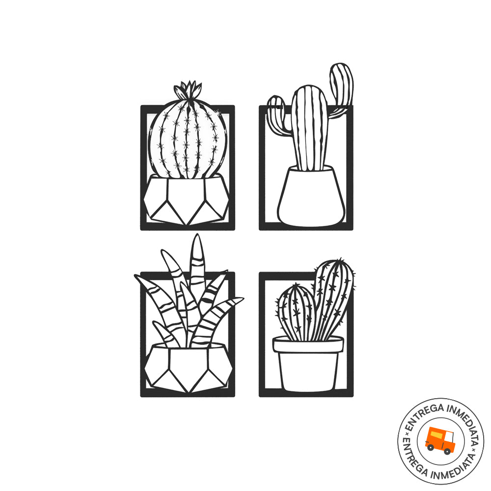 Combinación de 4 cuadros con diseño variado de Cáctus. Elaborados en metal de acero inoxidable y cubierta color negro de pintura electrostática.