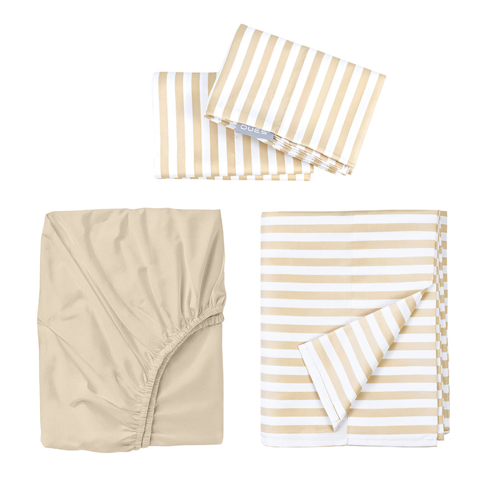 Juego de sábanas con estampado a rayas. 100% poliéster (microfibra). Tu compra incluye: Sábana de cajón Sábana plana Funda(s) de almohada *Juego individual incluye sólo 1 funda de almohada.