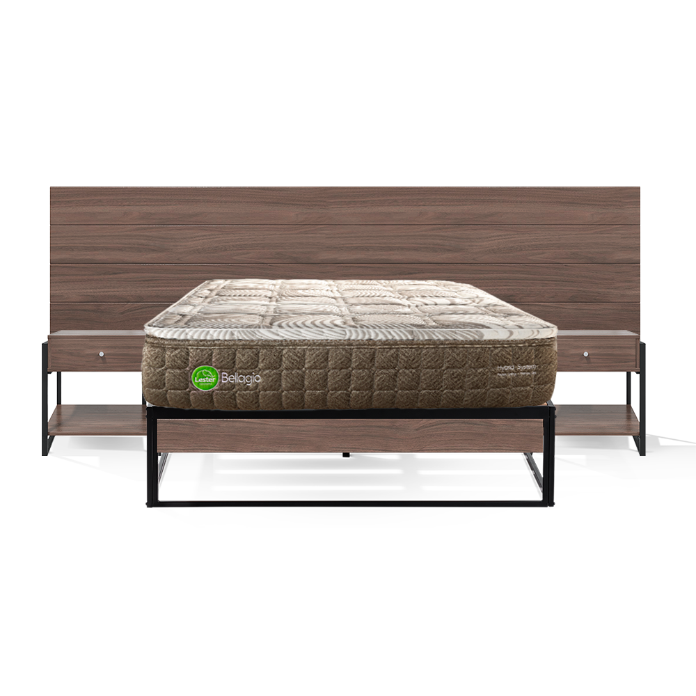 Recámara matrimonial de 5 piezas en color castaño más colchón Bellagio. Ideal para los más exigentes.  • 1 recámara matrimonial sicilia 1 base 2 burós 1 cabecera.  • 1 colchón Bellagio matrimonial: no transfiere movimiento.  Nivel de firmeza del colchón: 2